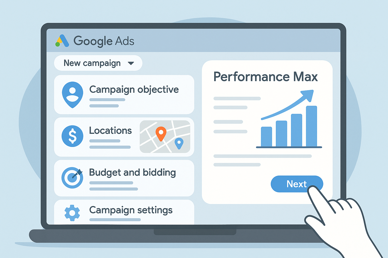 • Campanha: Defina o objetivo principal, como Reconhecimento de Marca, Tráfego ou Conversão.